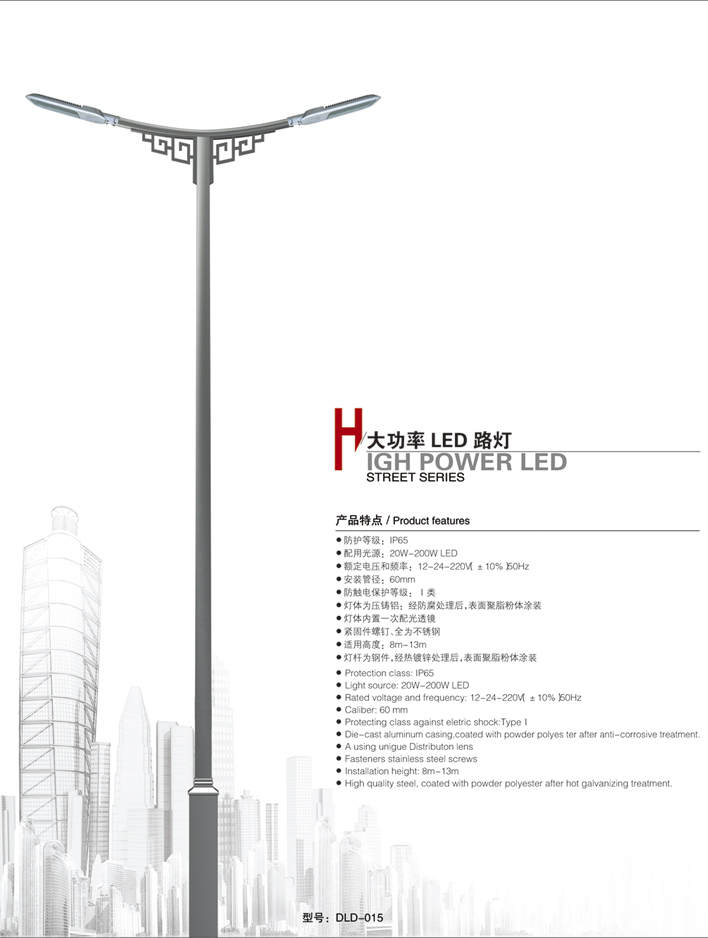 ● 燈桿為鋼件,經(jīng)熱鍍鋅處理后,表面聚脂粉體涂裝