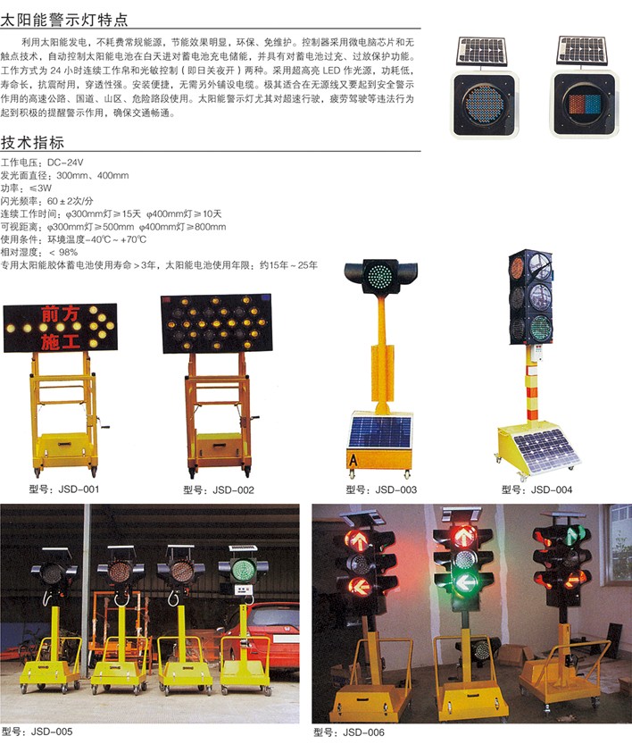 利用太陽(yáng)能發(fā)電,不耗費常規能源,節能效果明顯,環(huán)保、免維護??刂破鞑捎梦㈦娔X芯片和無(wú)觸點(diǎn)技術(shù),自動(dòng)控制太陽(yáng)能電池在白天進(jìn)對蓄電池充電儲能,并具有對蓄電池過(guò)充、過(guò)放保護功能。工作方式為24小時(shí)連續工作帛和光敏控制(即日關(guān)夜開(kāi))兩種。采用超高亮LED作光源,功耗低,壽命長(cháng),抗震耐用,穿透性強。安裝便捷,無(wú)需另外鋪設電纜。極其適合在無(wú)源線(xiàn)又要起到安全警示作用的高速公路、國道、山區、危險路段使用。太陽(yáng)能警示燈尤其對超速行駛,疲勞駕駛等違法行為起到積極的提醒警示作用,確保交通暢通。