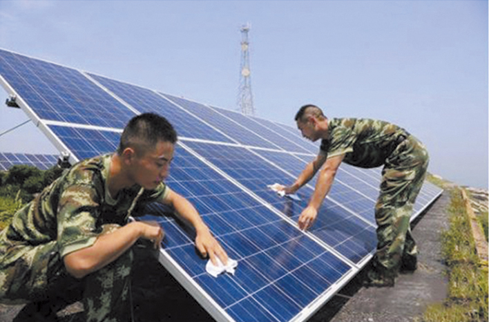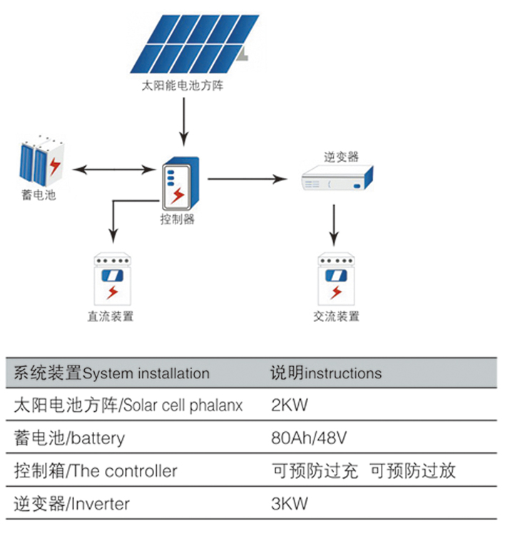 白天通過(guò)太陽(yáng)電池方陣發(fā)的電儲存在蓄電池電池中,滿(mǎn)足軍隊營(yíng)區生活照明和辦公設施使用。